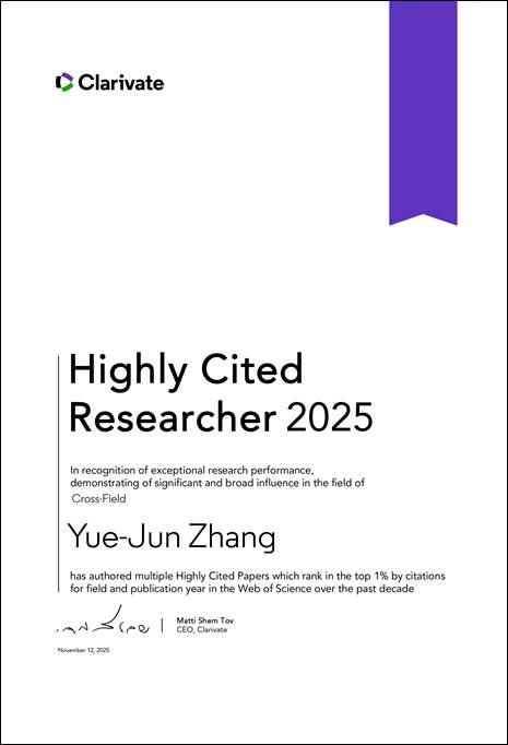 2025年11月12日,科睿唯安(Clarivate Analytics)发布了2025年度“全球高被引科学家”(Highly Cited Researchers 2025)名单,遴选全球高校、研究机构和商业组织中对所在研究领域具有重大且广泛影响的顶尖科研人才。来自全球60个国家和地区1300多家机构的6868名科学家(7131人次)入选2025年度名单,中国内地共有1406人次入选。湖南大学共有13位学者入选该榜单,研究中心负责人张跃军教授再次入选该榜单(跨学科领域)。